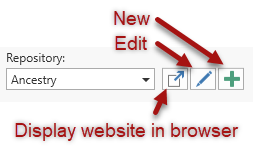 When editing a Source, the Repository can be changed by selecting a different one from the drop-down list, or click one of the button functions provided.