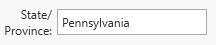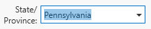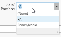 Data fields where values will likely be used multiple times (such as country, state, and county names) will display a drop-down list to choose from and also suggest automatically completed text as you type. When the edit mode is not active, these control appear like the basic text controls.