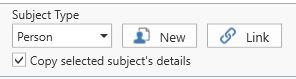 When the copy mode is active, any time a new Subject is created or a single existing Subject is linked to the Information Record, the details values from the "source" Subject will be immediately copied to the one just added. The newly added Subject will then be designated as the copy source for further additions.