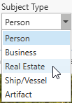 What type of Subject is it? In probably 99% or more of the cases it will be a person. However, Clooz does support other Subject types (businesses, real estate