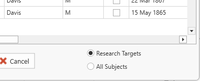 What you are trying to accomplish while researching some specific issue, question, or hypothesis. associated with that task had targeted Subjects designated, an additional feature becomes active. The Subject selection dialog includes the ability to display only the target Subjects or all Subjects. Select the desired list choice in the lower right corner of the selection window.