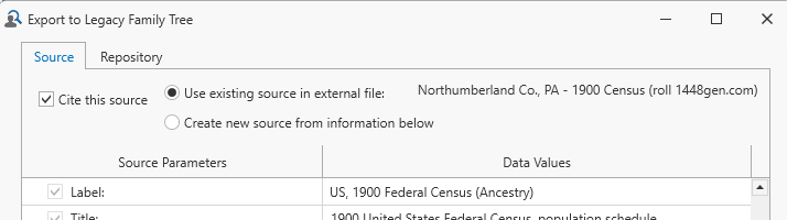 If the Source record was previously linked to a source in the external file, you can choose whether to cite the existing source in the external file, or create a new source in the external file.