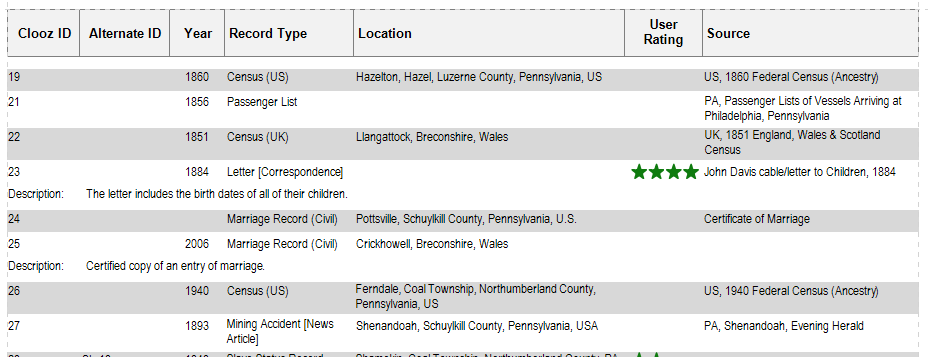 Information Records in Clooz hold the content information coming from a document or other source. These differ from a Source record that contains most of the citation information describing the docment, or the Repository record referring to the facility or online service where the document was found., Sources