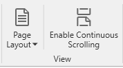 The Enable Continuous Scrolling button toggles the scrolling to either be continuous (page breaks smoothly scroll through the display), or when disabled, scrolling will jump to the top of the next page once the bottom of the page being scrolled becomes visible. The Enable Continuous Scrolling button is highlighted when enabled.
