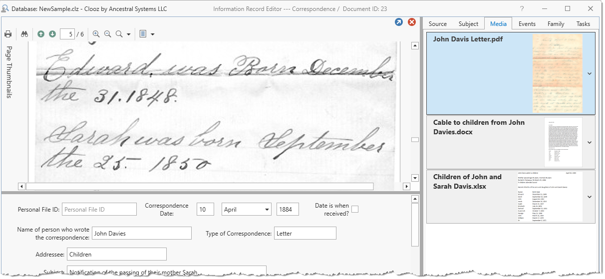 For instructions on linking digital media files to Clooz records and displaying them in media viewers such as this one, see Working with Digital Media Files.