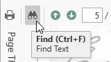 After clicking the Find button, a search bar will appear into which you should enter the text you are searching for. There are several options you can select from to define how the search will be done.