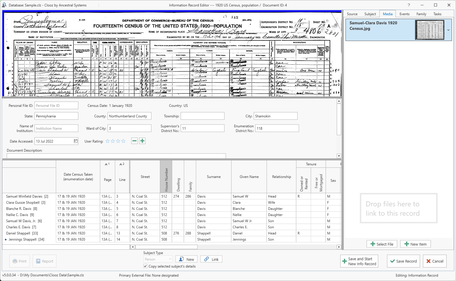 Linking a media file to a Clooz record